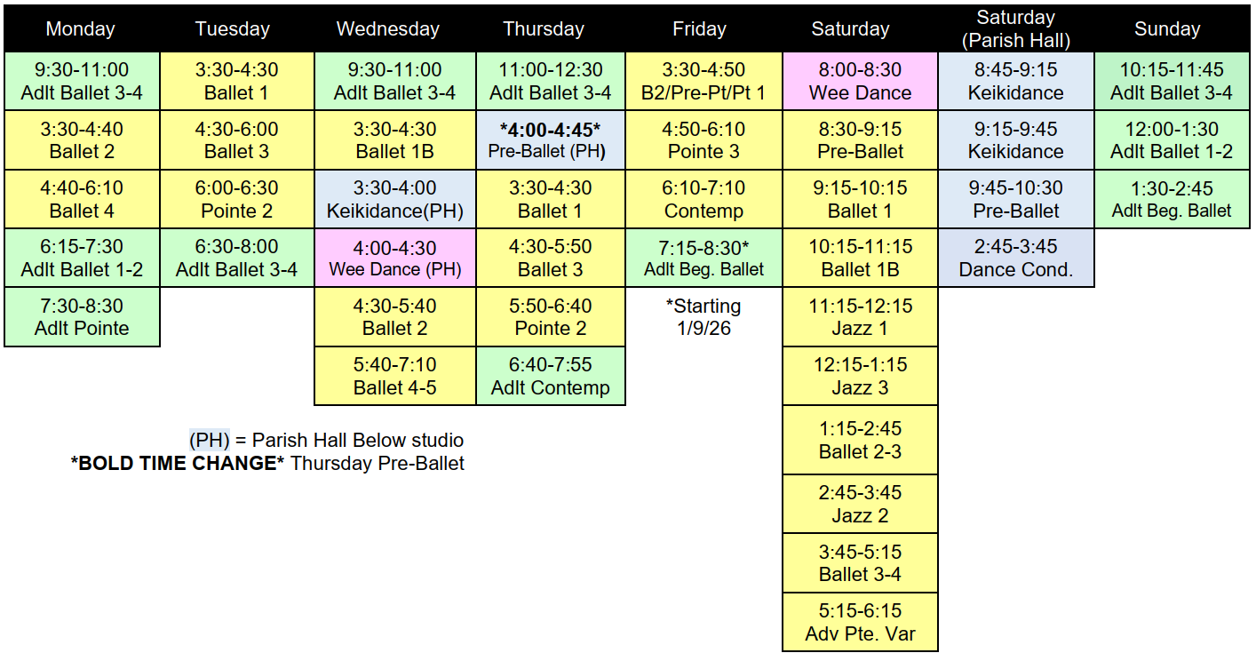 *Wee dance class price is for 19 weeks